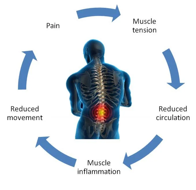 An increase in the level of pain raises anxiety levels as well as increasing muscle tension even more.